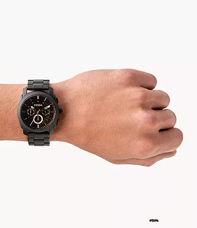 Embrace minimalism with this matte black IP stainless steel watch that also features a chronograph movement.
