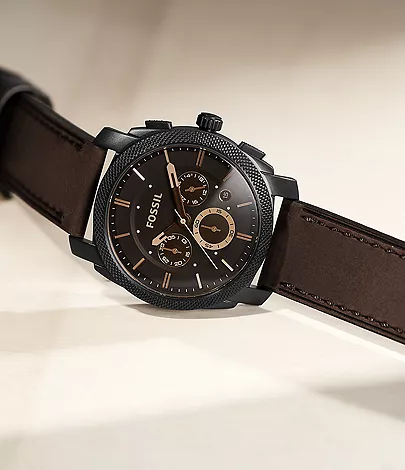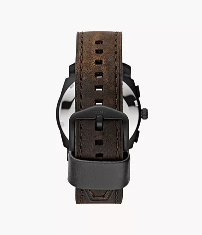 Make a statement with this dramatic timepiece featuring a brushed stainless steel black IP case and a brown leather strap. This Machine Mid-Size watch also features a chronograph movement.