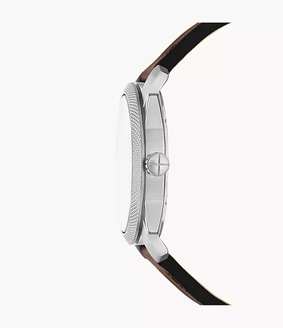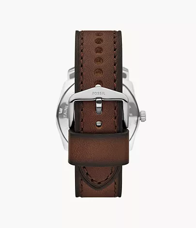 This 42mm Machine features a green cd finish sunray dial, three-hand date movement and brown leather strap. Fossil leather products support responsible manufacturing via the Leather Working Group.