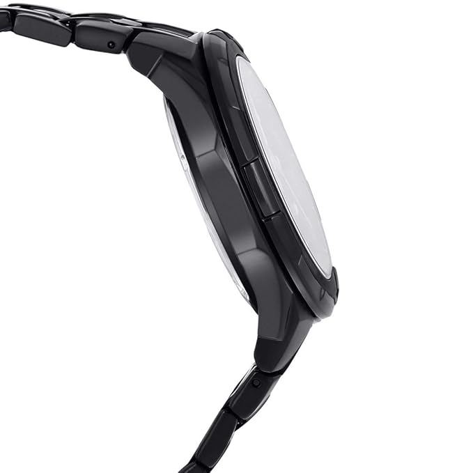 Strap style: Black bracelet-style metal strap secured with a butterfly clasp