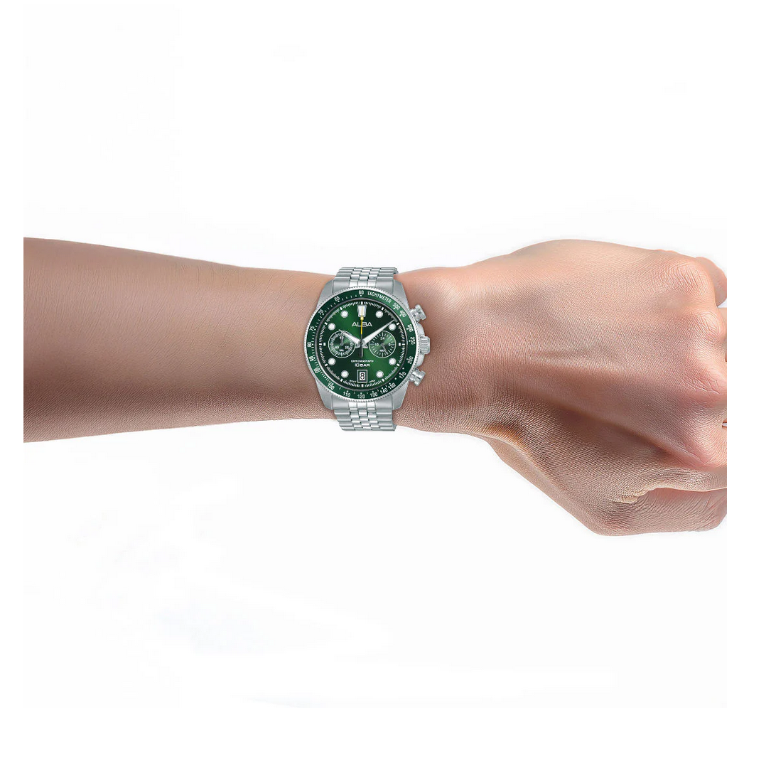 Men Quartz Green Dial Chronograph Steel Watch A4B029X1