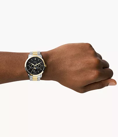 This 42mm Neutra Moonphase features a black sunray dial, moonphase multifunction movement and two-tone stainless steel bracelet.