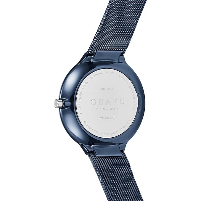 Ark Lille Arctic boasts a just 4,9 mm slim case and is an ultra-thin and ultra-stylish designer piece. Ark Lille Arctic is build using surgical stainless steel and sapphire crystal. The steel topring pops on top of the shimmering deep blue case and mesh bracelet. It’s a dual-toned fashion statement worth having.