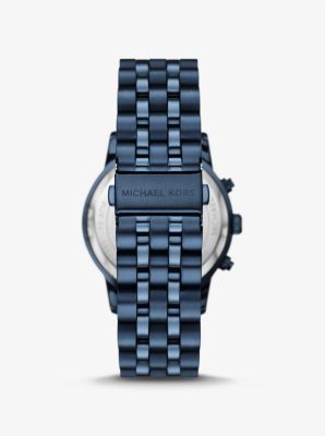 Designed for those who appreciate the luxury of time, our Hutton is the statement watch to own. A chronograph display delivers precision timekeeping, while navy-tone stainless steel craftsmanship ensures it will stand up to endless wear. A textured topring and “MK” print dial lend a subtle yet sophisticated finish.