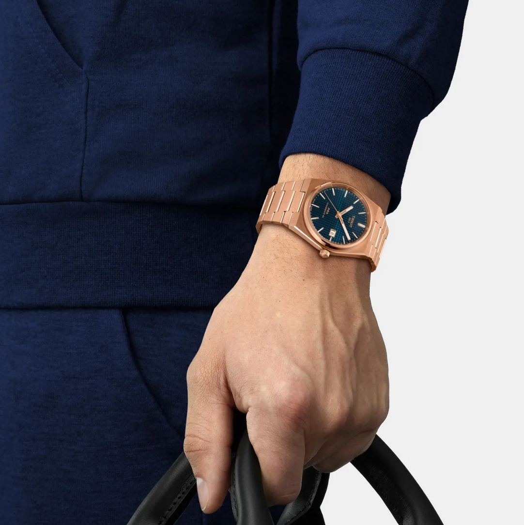 The blue dial and chronograph layout create bold presence while maintaining PRX architectural clarity.This model is ideal for men seeking advanced automatic chronograph precision with integrated stainless steel styling.