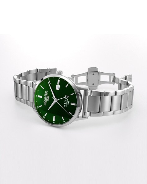 The 40 mm SLIM-LINE CLASSIC epitomizes timeless elegance with its sleek, streamlined style and low profile. Featuring slender hour markers in silver, gold, or rose gold, and a discreet minute hand, its minimalist dial is accentuated by double indexes at 12 and 6 o¿clock and a date window at 3 o¿clock. Housed in a stainless steel case with a Swiss Made Ronda 715 quartz movement, it boasts a smooth bezel, fluted crown, and a choice of stainless steel or bi-color bracelet. Protected by a mineral crystal, it offers refined sophistication.