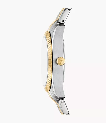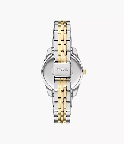 This 33mm Scarlette features a green sunray dial, three-hand date movement and two-tone stainless steel bracelet.