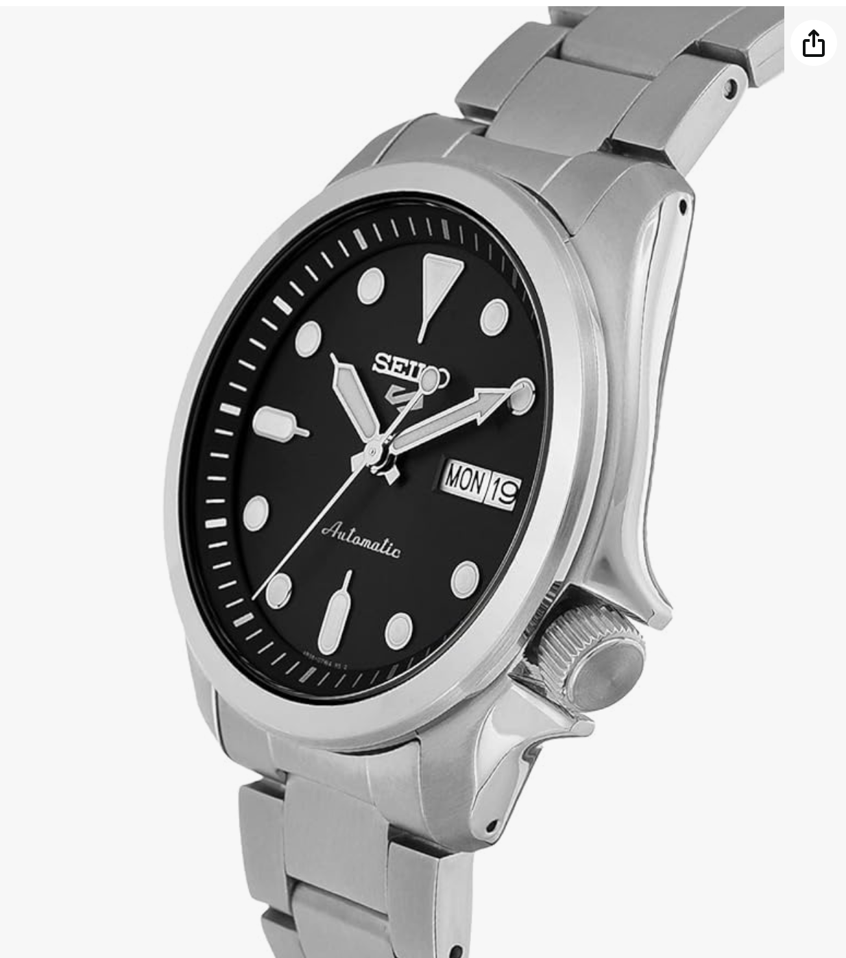 men's analog watch from Seiko is housed in a hardlex case. It showcases