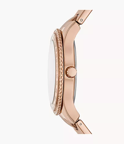 This 37mm Stella Sport features a rose gold satin, sunray dial, multifunction movement and rose gold-tone stainless steel bracelet.
