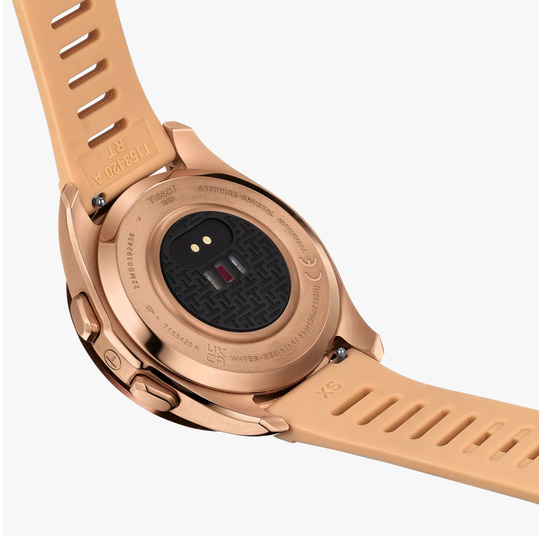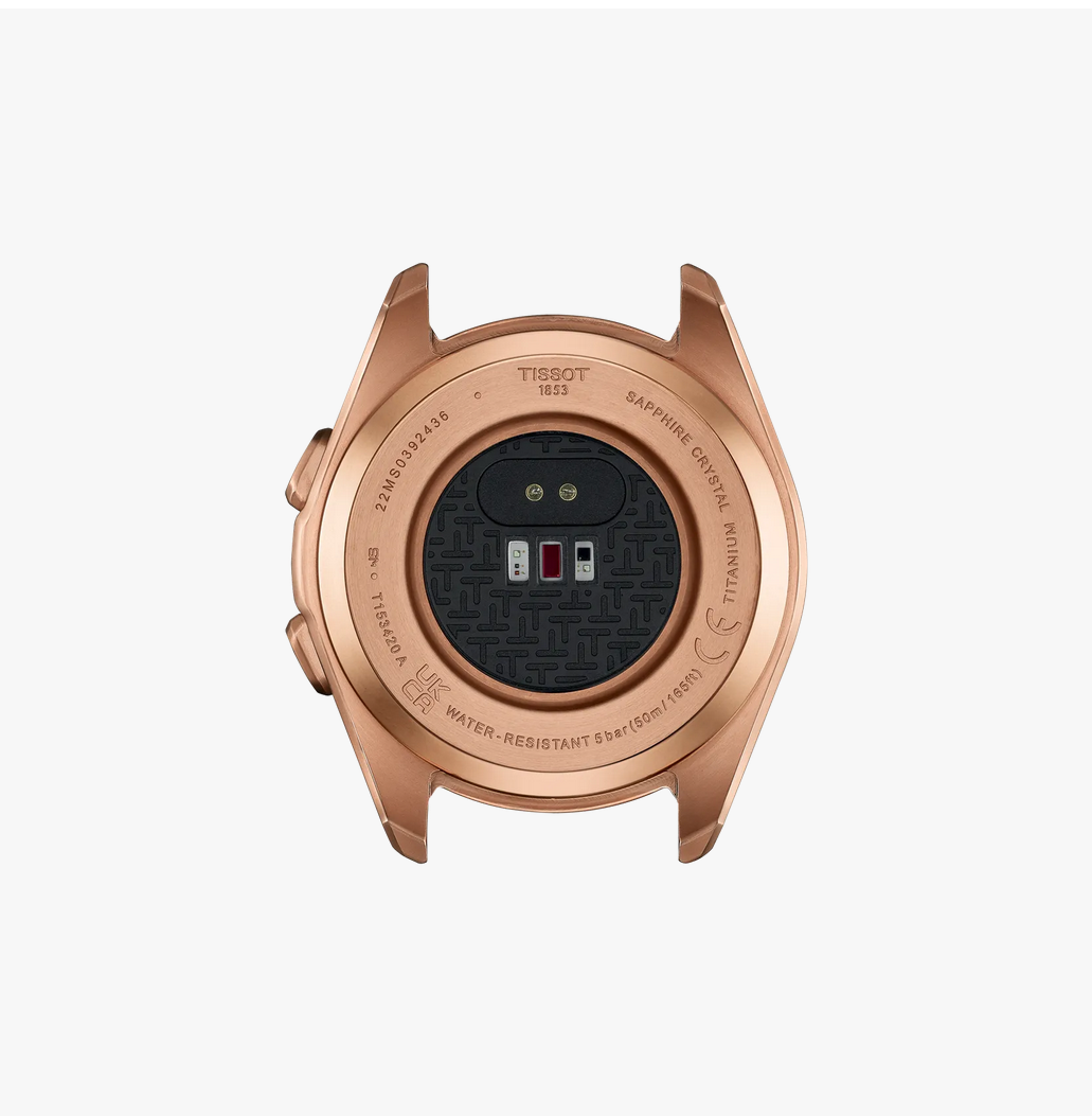This watch is powered by a Swiss solar quartz connected movement that provides accurate timekeeping and light-powered smart functionality.