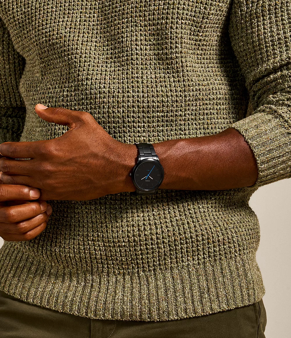 Mastering the balance of vintage inspiration with modern design, this timepiece encapsulates the minimalistic aesthetic from its clean face to its slimmed-down case, which sits effortlessly against the wrist.