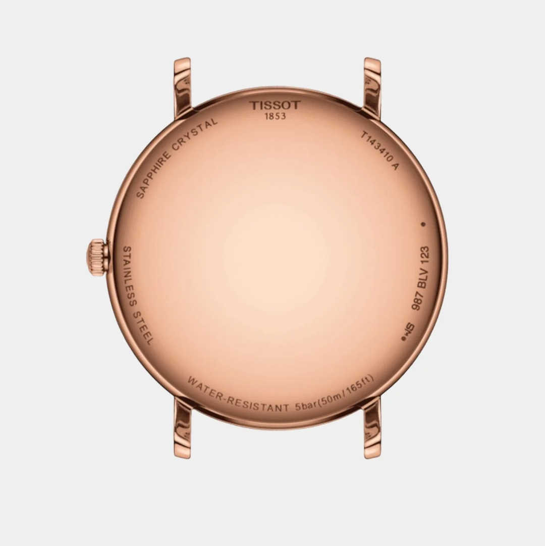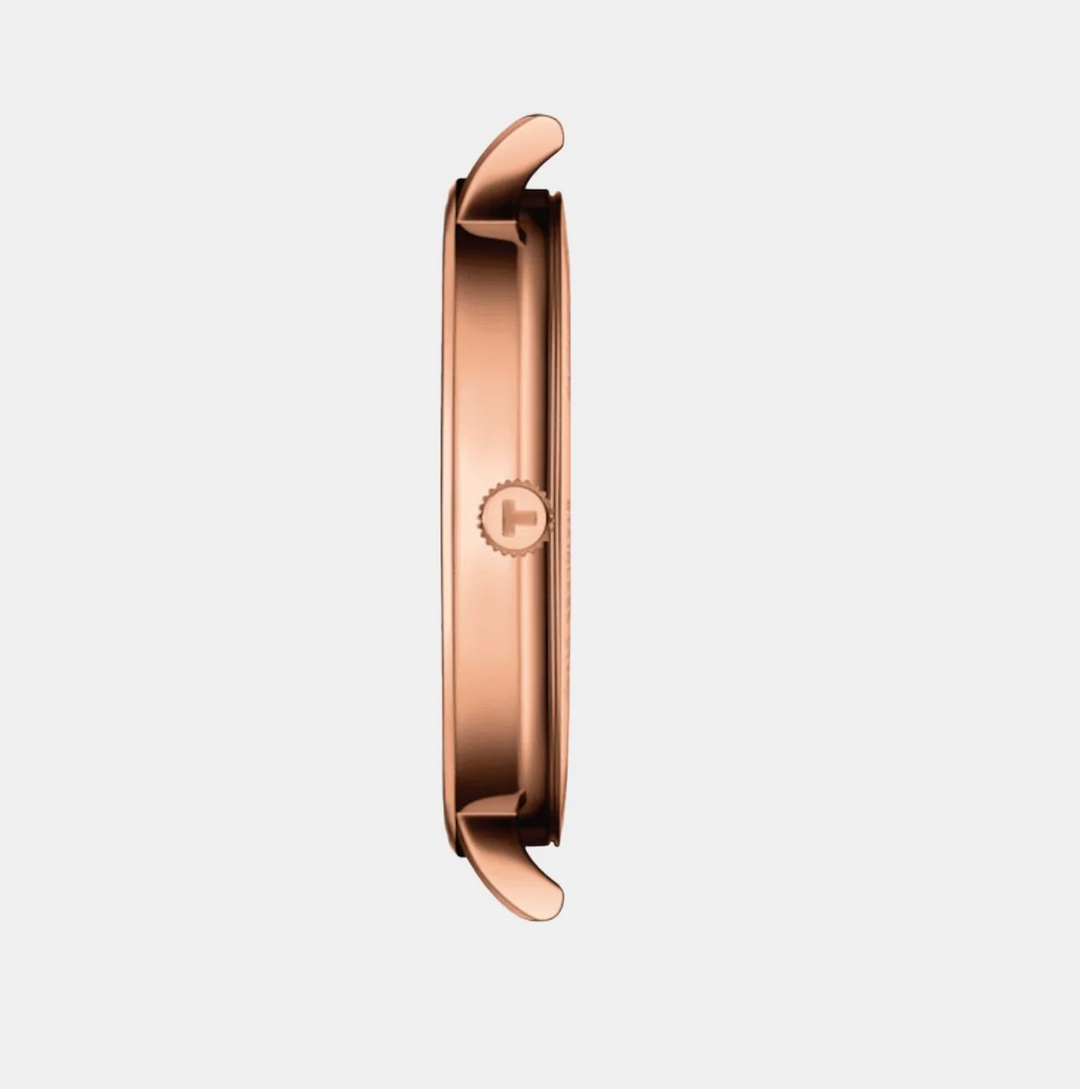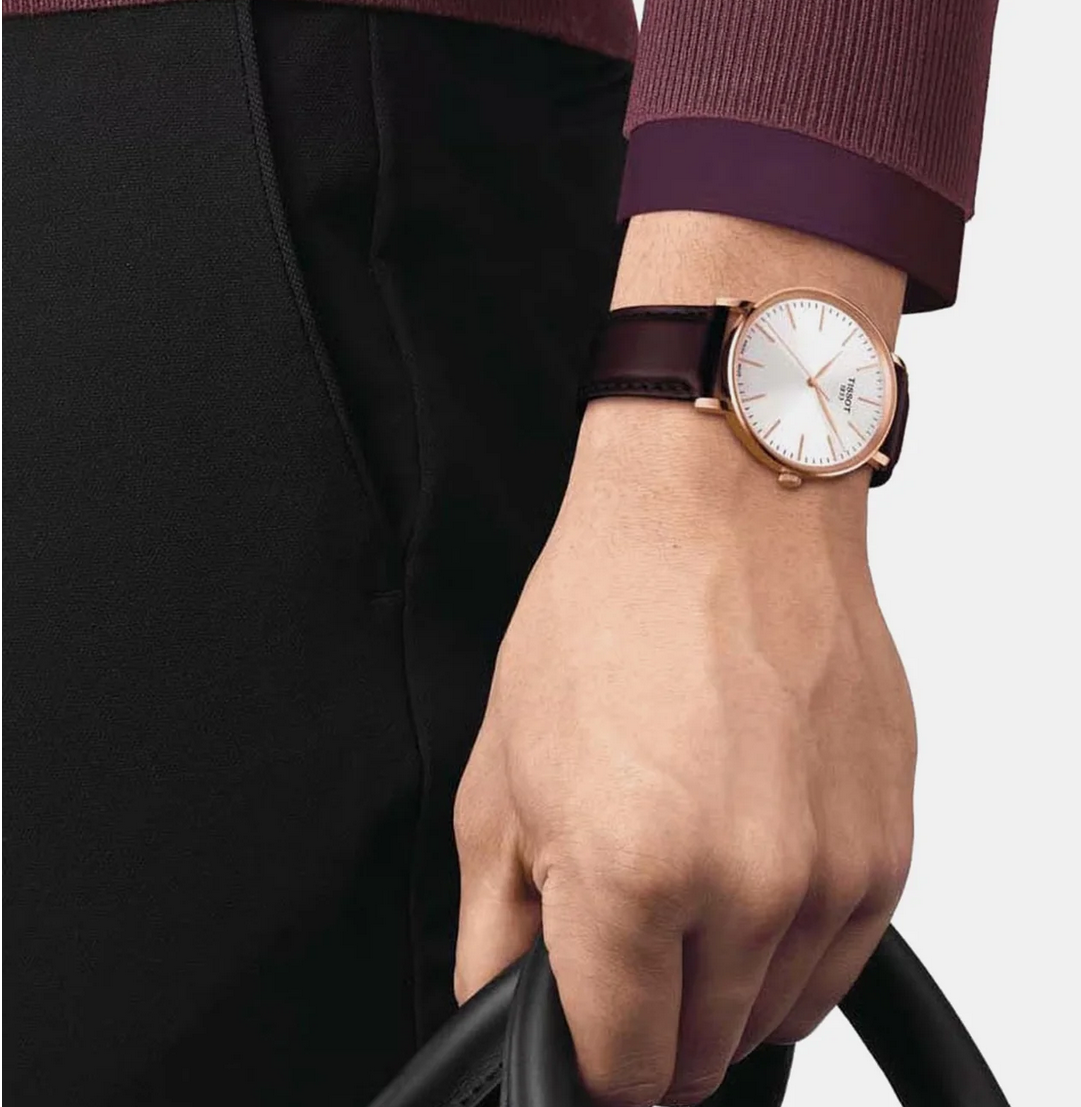 The T143410360 1100 distinguishes itself with its classic white dial and warm leather strap pairing, creating a sense of timeless poise. The dial’s clean layout feels composed and intentional, emphasising legibility and functional balance. On the wrist, the watch reads as familiar yet polished — a design that feels at ease in both casual and smart contexts.