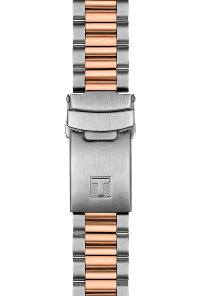 stainless steel and PVD rose gold bracelet, this timepiece keeps you in