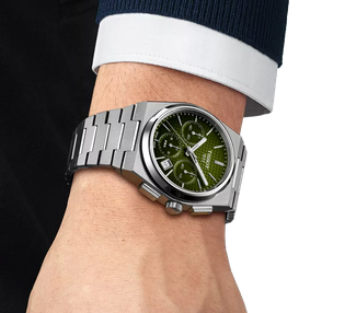 Created for those with an eye for design and packed with twenty-first century features in a Tissot case shape from 1978, the PRX Chrono is a must-have on every watch fan’s wish list. This 42mm satin-finished steel watch follows the PRX’s sleek, angular form, adding to the laid-back 1970s sports watch style with a so-called ‘reverse panda’ dial. The PRX Chrono is powered by the Valjoux A05.H31 calibre, which provides the design with the classic 3, 6 and 9 chronograph dial layout and an extended 60-hour power reserve.