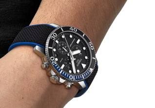The Tissot Seastar 1000 is the ultimate diving watch, with its high water-resistance up to a pressure of 30 bar (300 m/1000 ft), screw-down crown and case back as well as its unidirectional ceramic bezel.