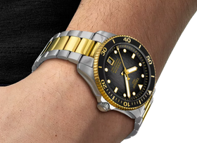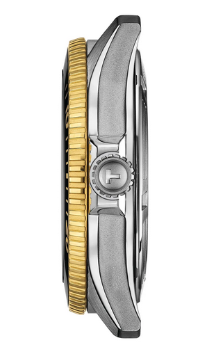 This updated edition of one of Tissot's main collections now introduces a 40mm casing option with the Powermatic 80 at its heart. For this new release, the casing has undergone a subtle transformation, incorporating a notch along its case edges, resulting in a more compact and sophisticated appearance. These timepieces are perfect for those in search of a sporty yet assertive accessory, offering water resistance up to 1000 feet (300 meters) and improved visibility in dim conditions thanks to the Super-LumiNova® coated hands and hour markers. This release features five distinct models, varying in dial colors and finishes from stainless steel to bi-color combinations, including unique blue to black gradients and exclusive black PVD-coated options. Each variant delivers a unique aesthetic while maintaining the collection's signature sporty yet bold appeal.
