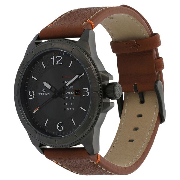Titan Analog with Day and Date Anthracite Dial Leather Strap watch for Men