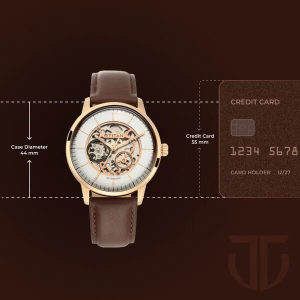 Titan Automatic Silver Dial Brown Leather Strap Watch for Men