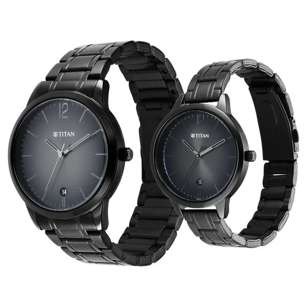 Titan Bandhan Anthracite Dial Analog with Date Stainless Steel Strap Watch for Couple