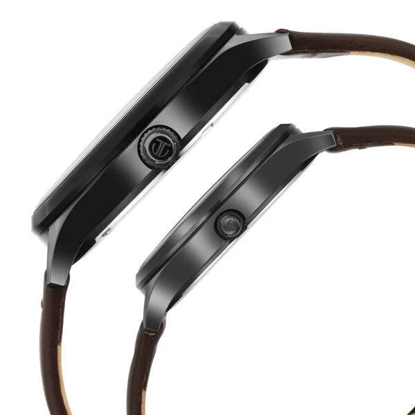 These Sporty Couple Watches combine dynamic design with functionality, perfect for active couples who appreciate both style and precision. Featuring a striking green sunray dial with sharp silver indices, these timepieces offer a bold, vibrant look. The black case adds a touch of sophistication, while the brown leather straps provide a classic contrast for a comfortable fit. Equipped with multifunction sub-dials, these watches offer practical features for the modern couple on the go. Ideal for outdoor lovers, active couples, or as a unique engagement gift, these sporty watches are a perfect blend of adventure and elegance.