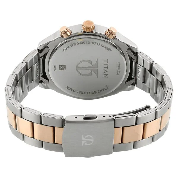Titan's Neo Bandhan presents a classic pair of white dial analog watches with a metal strap. The rose gold strap and buckle lock closure add sophistication. The watches are not just timekeeping accessories but symbolic representations of togetherness. To showcase their cohesive appeal, style them with coordinating outfits, creating a unified look for special moments.