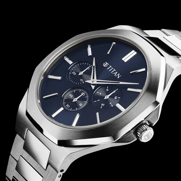 Display Brand Titan Name Titan Classic Slim Multifunction Quartz Multifunction Blue Dial Stainless Steel Strap Watch For Men