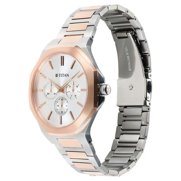 Display Brand Titan Name Titan Classic Slim Multifunction Quartz Multifunction Silver Dial Stainless Steel Strap Watch For Men