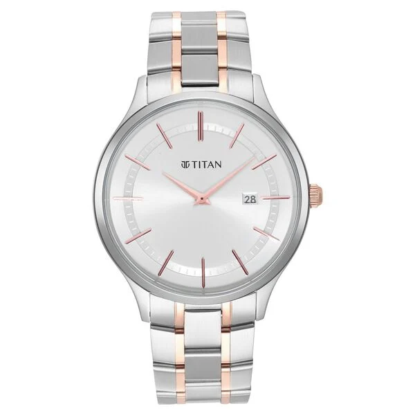 Titan Classique Slimline Silver Dial Analog with Date Stainless Steel Strap watch for Men