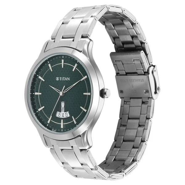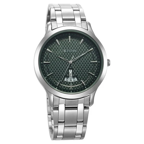 Display Brand Titan Name Titan Karishma Quartz Analog Green Dial Silver Stainless Steel Strap Watch For Men