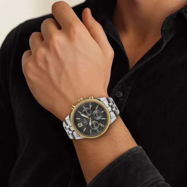 Titan Men's Metropolitan Luxe: Multifunction Anthracite Dial with Two-Tone Stainless Steel Bracelet Watch