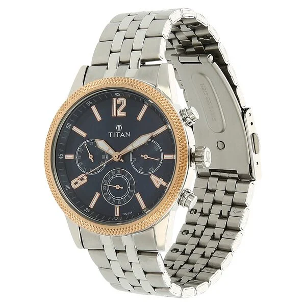 Titan Men's Metropolitan Luxe: Multifunction blue Dial with Two-Tone Stainless Steel Bracelet Watch