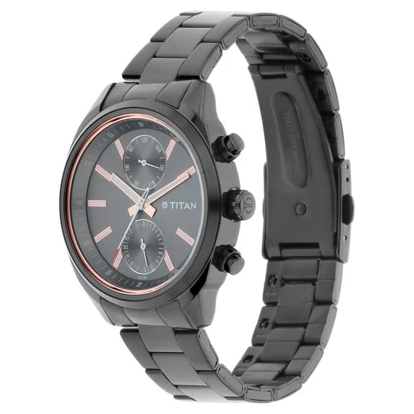 Titan Men's Metropolitan Luxe: Multifunction Mono black Dial with Two-Tone Stainless Steel Bracelet Watch