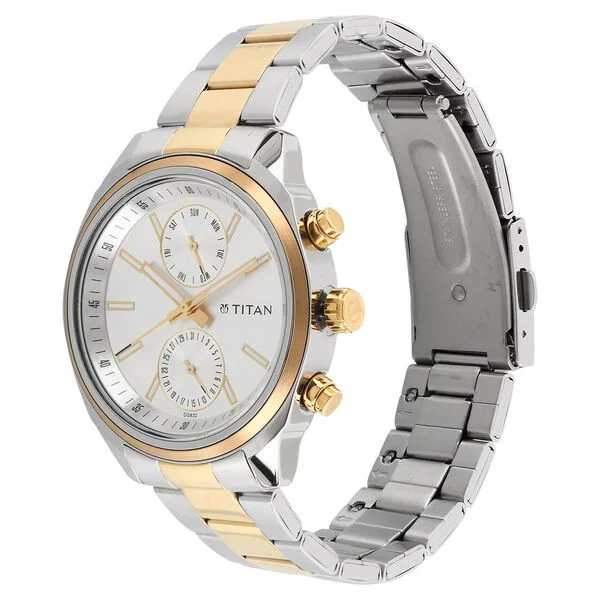 Titan Men's Metropolitan Luxe: Multifunction Silver Dial with Two-Tone Stainless Steel Bracelet Watch