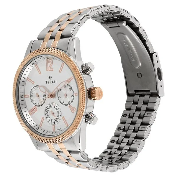 4. Titan Men's Metropolitan Luxe: Multifunction White Dial with Two-Tone Stainless Steel Bracelet Watch