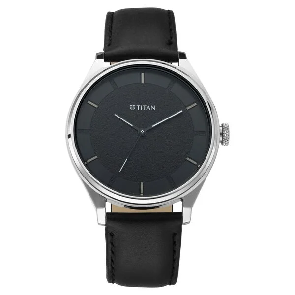 Titan Men's Minimalist Zen Watch: Sleek Leather Strap with Contrast Hands