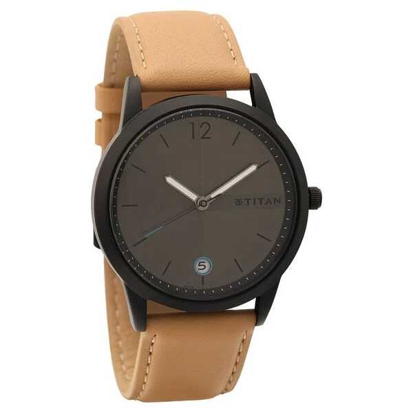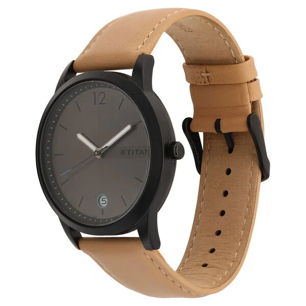 Titan Men's Timeless Style Watch: Refined Anthracite Dial and Lather Strap