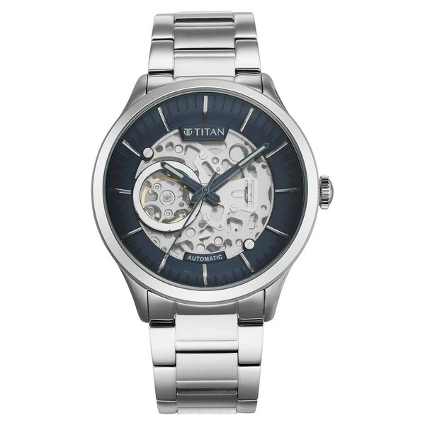 Titan Metal Mechanicals Blue Dial Automatic Stainless Steel Strap watch for Men