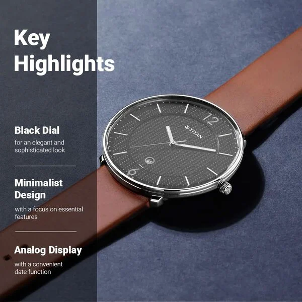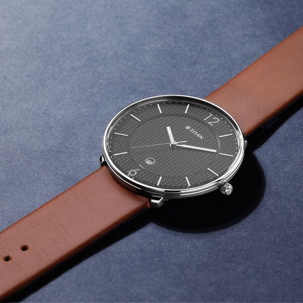 Titan Minimals Black Dial Analog Date Leather Strap Watch for Men