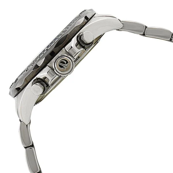 This chronograph, black dial watch with stainless steel silver strap is a delight for the style connoisseur. Orchestrate your imperial look with stunning white and red hands set against a dark background, and white scores to denote the digits. Its rotating bezel, 1/10 second chronograph function and 10 ATM water resistance come with a secure diver's clasp, multiple movements, and quartz precision. The mineral glass round cover is built to last, and the watch comes with a two-year warranty. This one is perfect for the trendy go-getter.