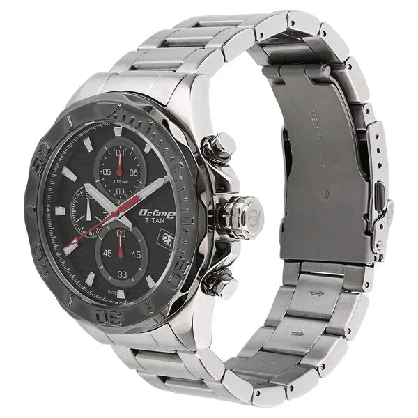 Display Brand Titan Name Titan Octane Black Dial Chrono Stainless Steel Watch for Men