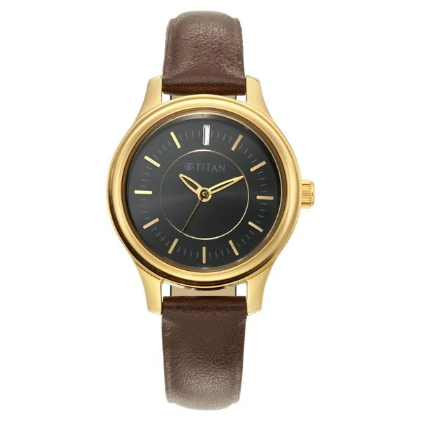 Titan Quartz Analog Black Dial Leather Strap Watch for Women