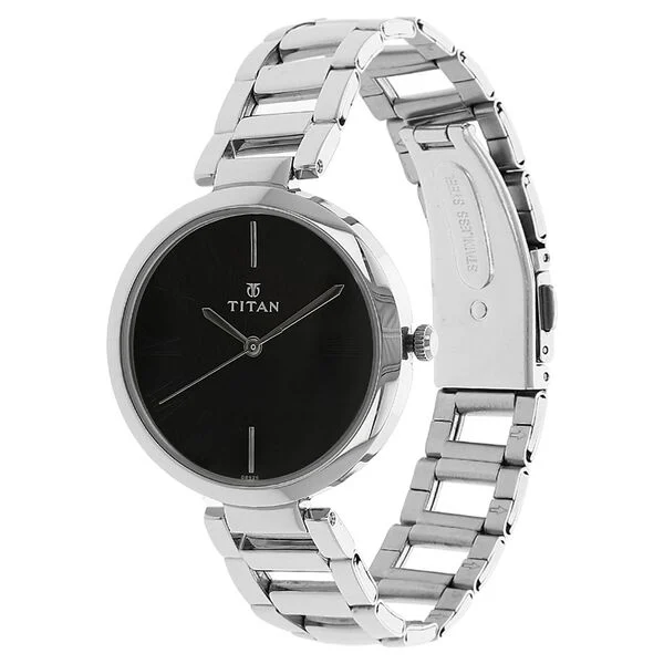 Titan Quartz Analog Black Dial Stainless Steel Strap Watch for Women