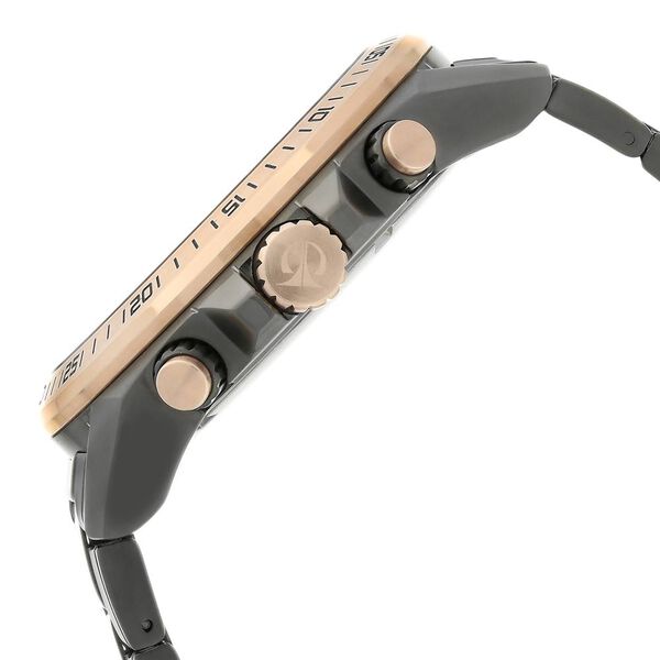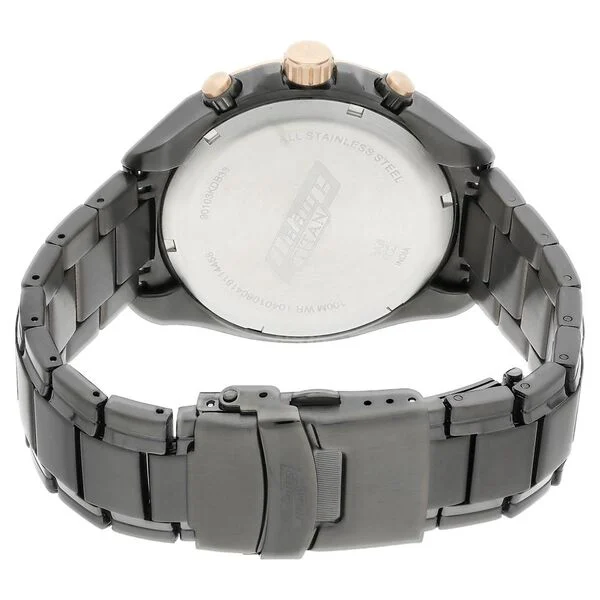 Redefine simplicity with this chronograph men's watch, featuring a slim steel case, black round dial, and reliable quartz movement. Polished detailing, minute markers, and a greyish steel bracelet add luxury. With 10 ATM water resistance, it's a proper dive tool with a touch of sophistication