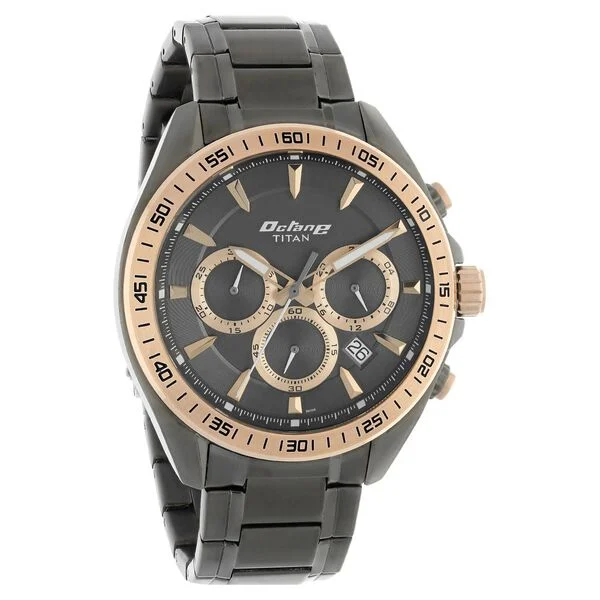 Titan Quartz Chronograph Black Dial Stainless Steel Strap Watch for Men