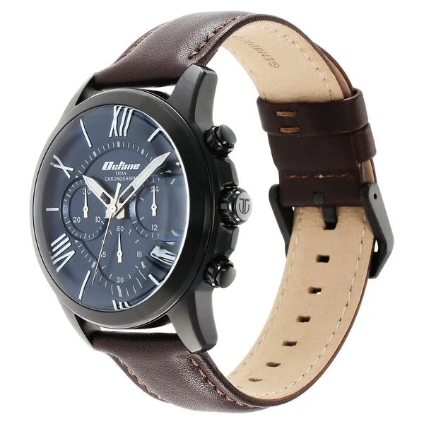 Titan Quartz Chronograph Blue Dial Leather Strap Watch for Men
