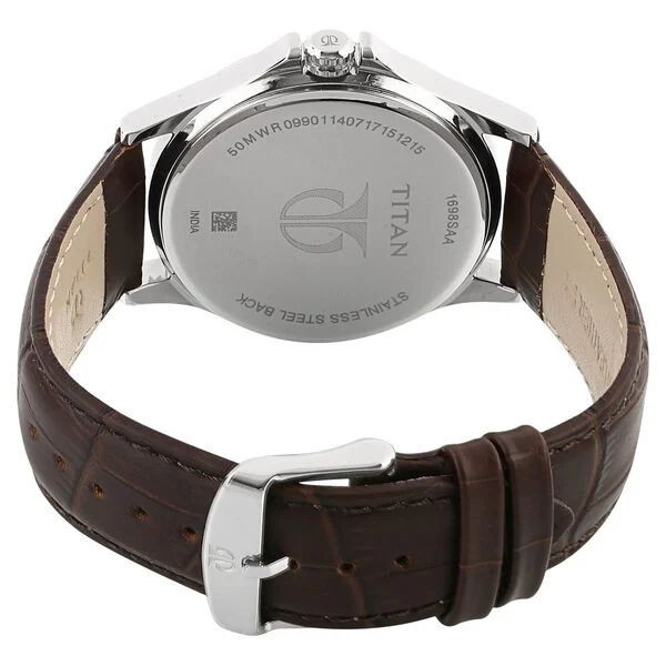 Display Brand Titan Name Titan Quartz Multifunction Silver Dial Leather Strap Watch for Men