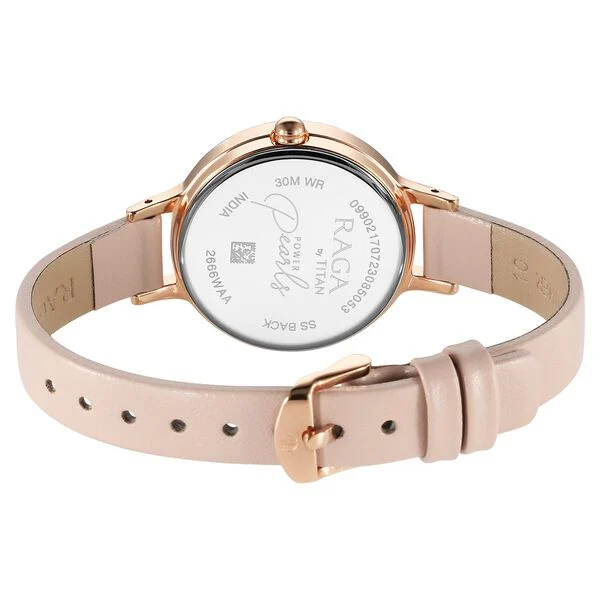 Titan Raga Power Pearls Quartz Analog Mother Of Pearl Dial Leather Strap Watch for Women