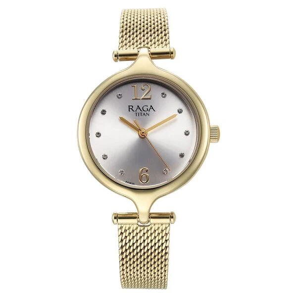 Display Brand Titan Name Titan Raga Showstopper Quartz Analog Silver Dial Metal Strap Watch for Women