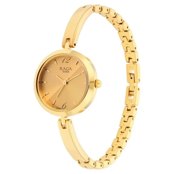 Titan Raga Viva Golden Dial Analog Metal Strap Watch for Women