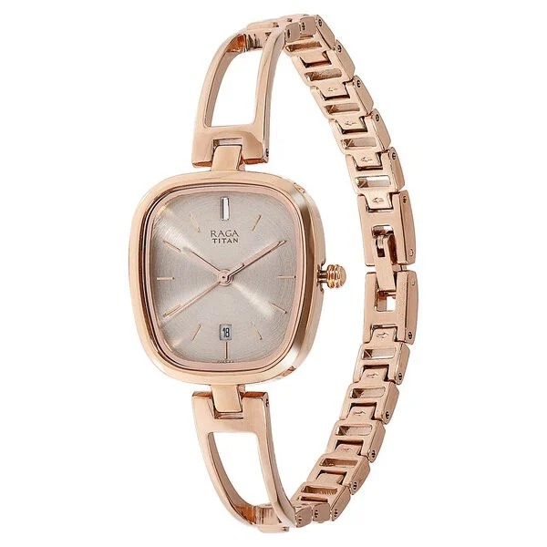 Titan Raga Viva Grey Dial Analog with Date Rose Gold Metal Strap watch for Women